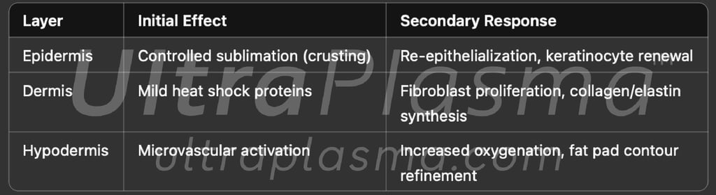 UltraPlasma™ arc plasma mode(white-blue emission) precisely targets and sublimates superficial keratinocytes through:
