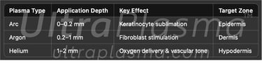 UltraPlasma™ introduces a unique multi-gas emission platform, enabling selective epidermal sublimation, dermal collagen remodeling, and deep skin regeneration via gas-specific depth modulation.